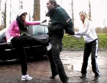 Mistresses go out for a jog, and they have been talking about getting fit, and they always forget. They go to the woods, and then they get stopped by a guy driving by the road, and they try to ignore him, but they don't get the peace they were waiting for. They get tired of the pestering and come up with a plan to teach him not to mess with strangers. They trample on him once her got out of the car, and they crushed him under the mad and lick his dirty car tires.